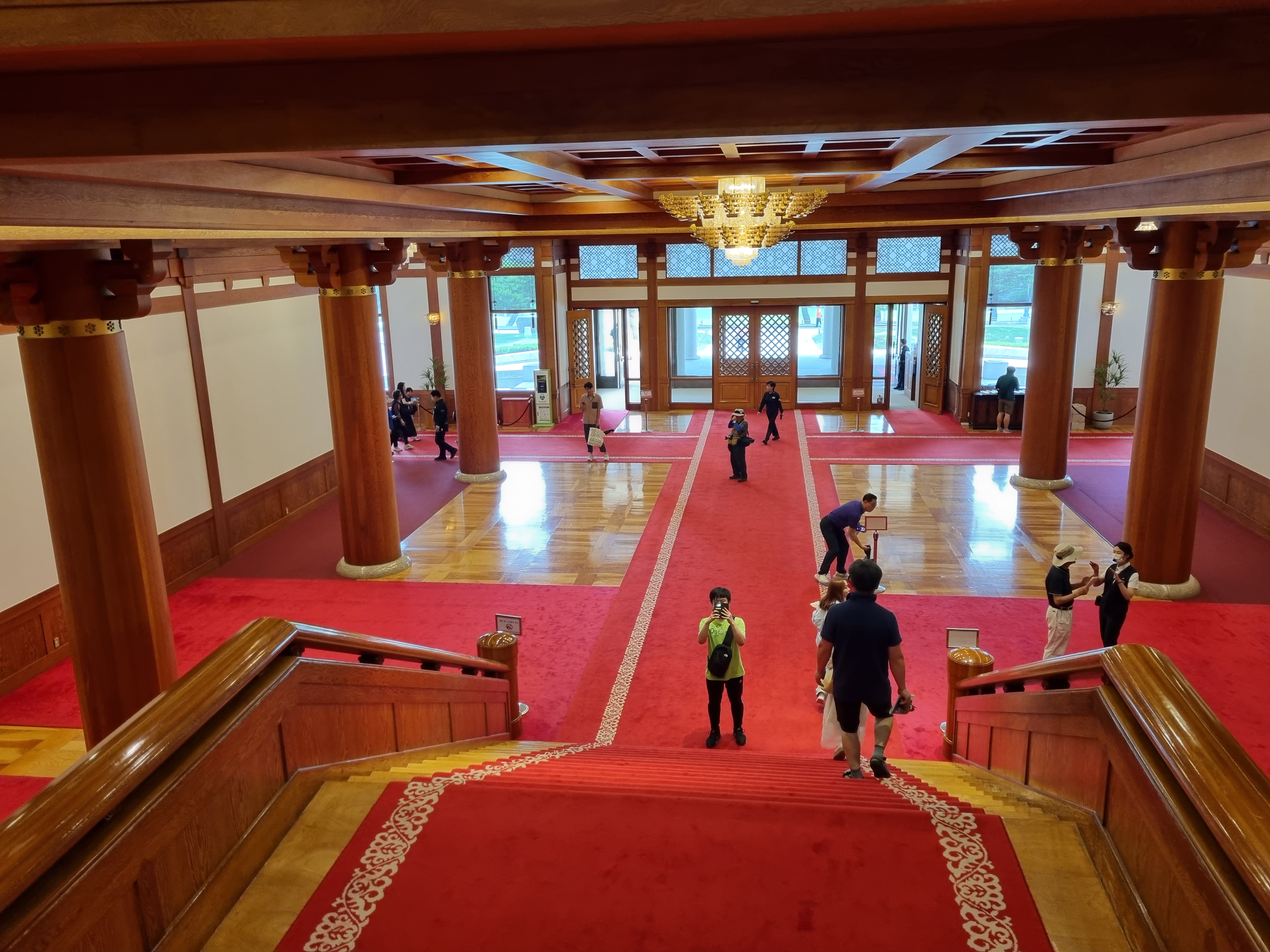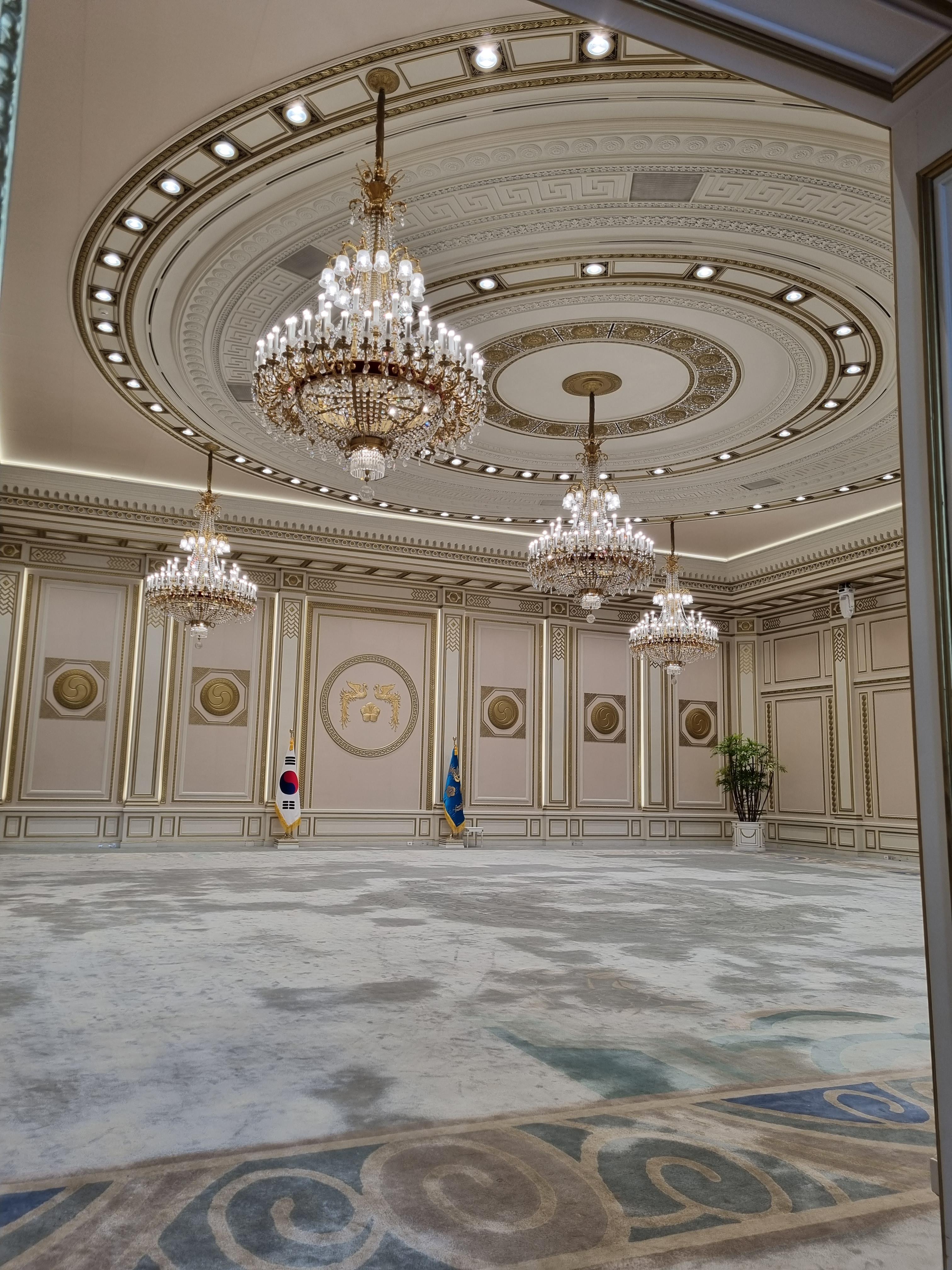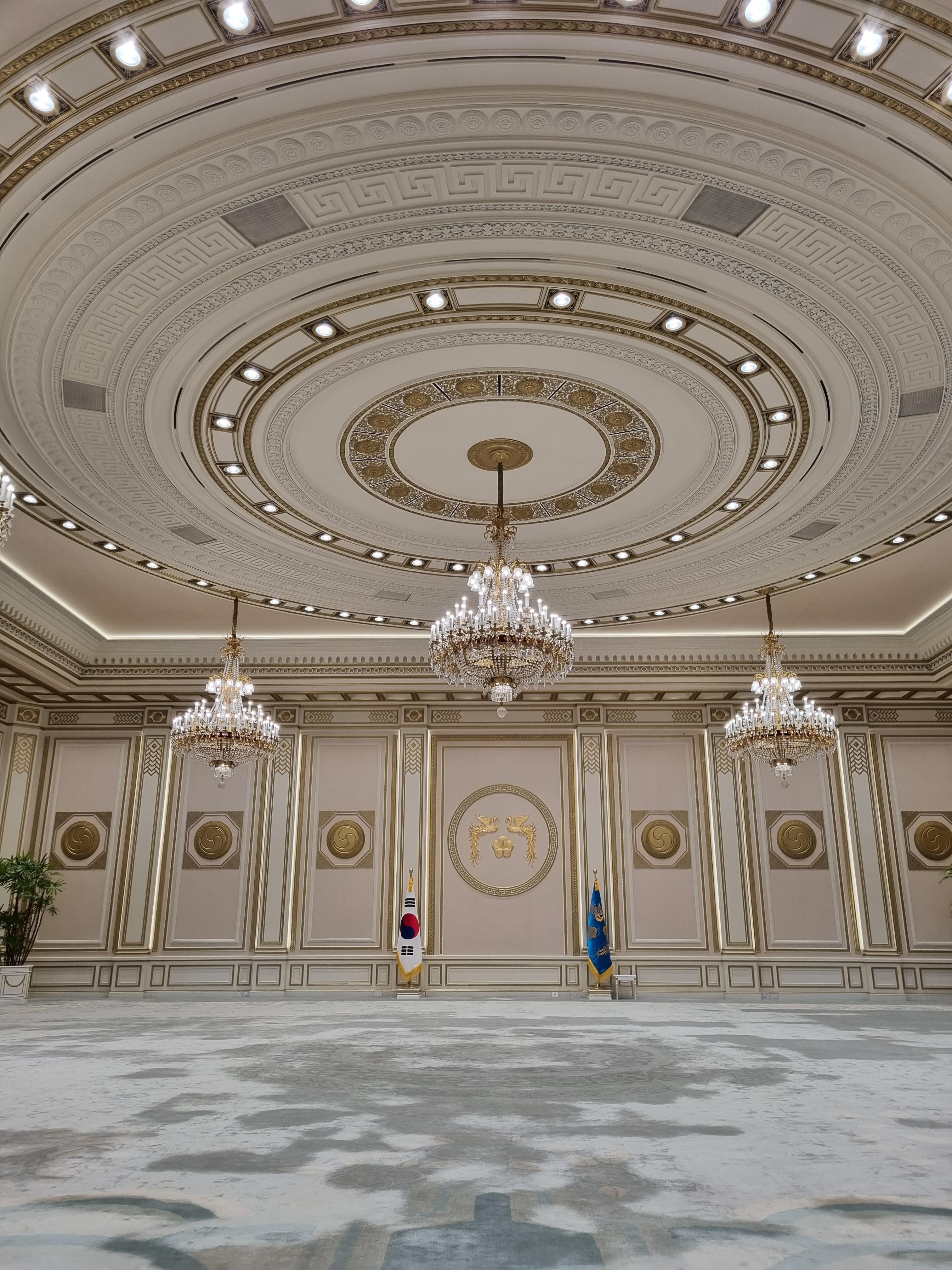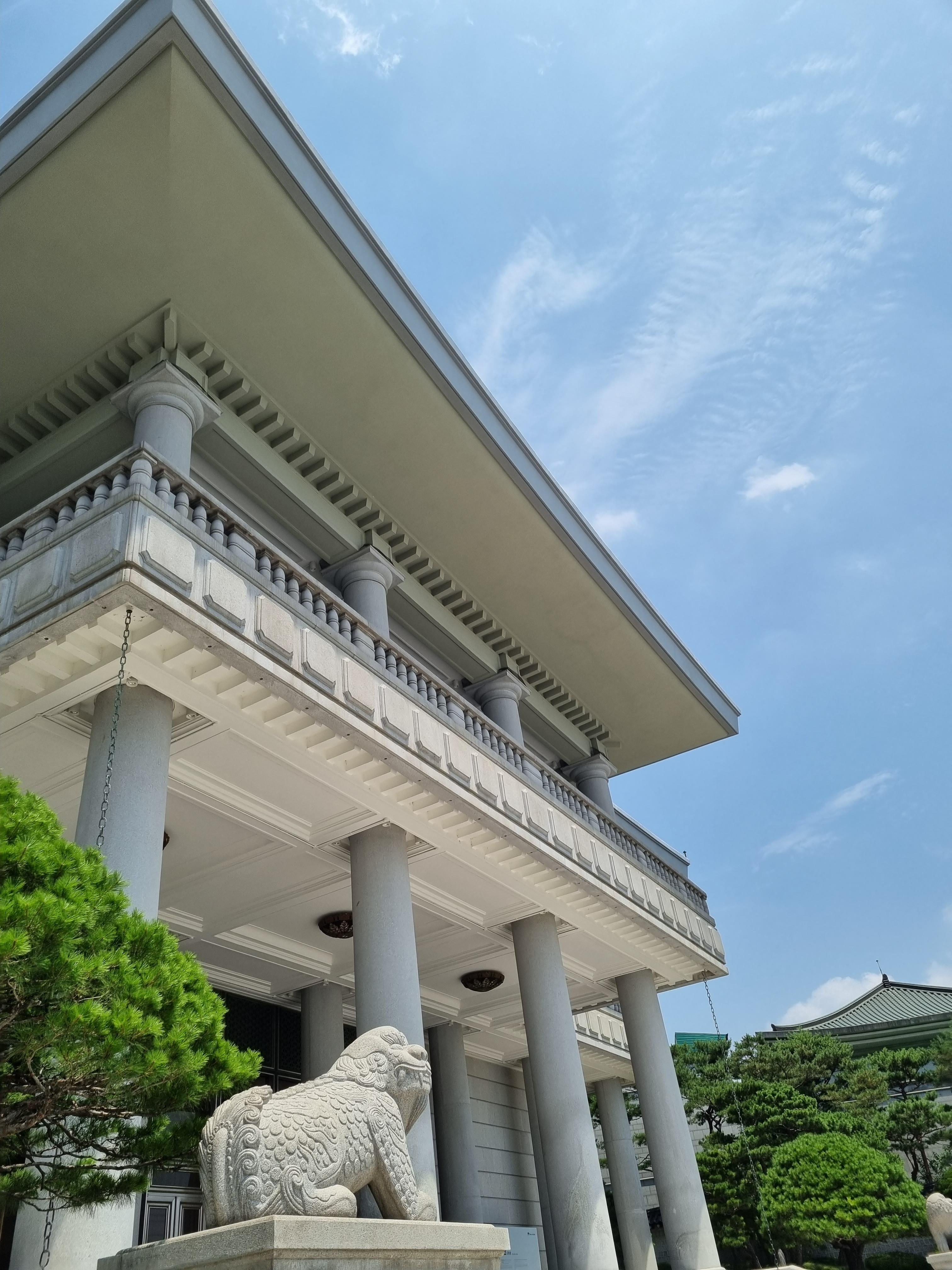 집무실을 일별하고 본관을 나서 대정원 우측의 샛길을 이용해 영빈관에 섰다. 해태상을 앞세운 높이13m, 둘레3m인 돌기둥이 영빈관의 장중함을 뽐낸다. 돌기둥 4개는 이음새가 없는 하나의 석주다. 국빈을 맞이하여 각종 연회를 베풀 영빈관이기에 우아하고 위엄을 자아내는 건물이어야 할 테다. 영빈관을 나와 소정원을 소요하며 녹지원을 향한다. 2023. 07. 06