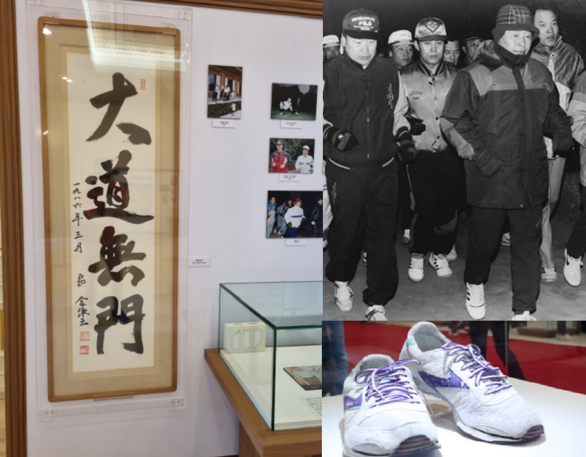 김영삼대통령의 친필 '대도무문'. 청와대 녹지원에서 새벽조깅을 해온 김영삼 대통령에겐 건강관리 이상의 의미요 상징이었다. 고뇌 속에 주요정책을 결심하고 국정을 정리했다. 1993년 8월12일 금융실명제를 발표한 그날의 새벽 조깅은 평소보다 두 배는 빠른 속도로 달리며 긴장감을 속도로 해소했다. 김영삼 대통령의 새벽조킹모습과 조조깅화