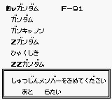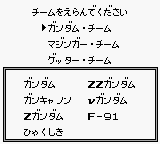 위에서부터 건담 팀, 마징가 팀, 겟타 팀을 선택할 수 있다.