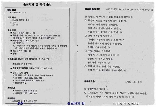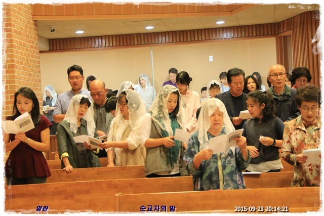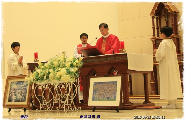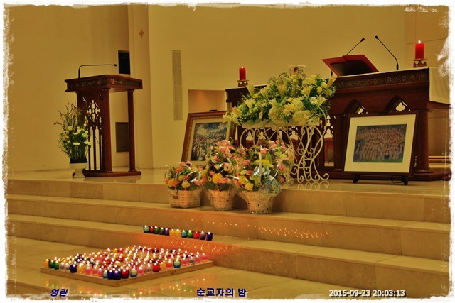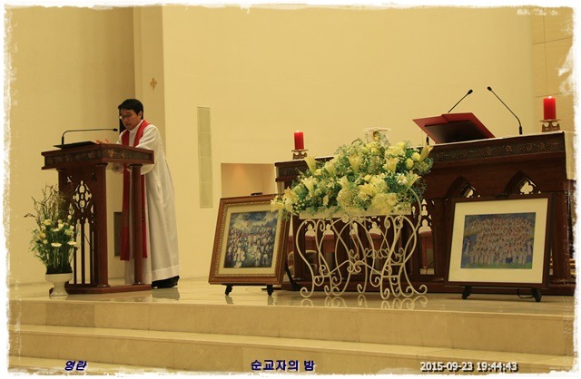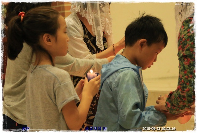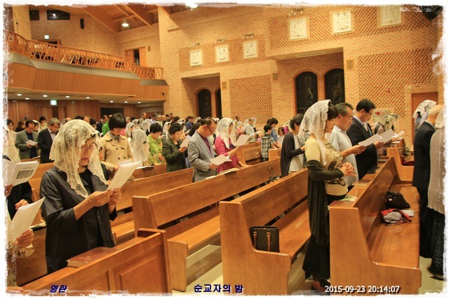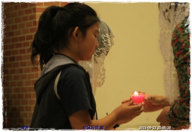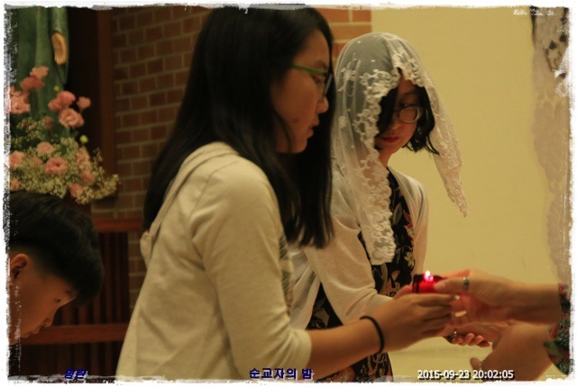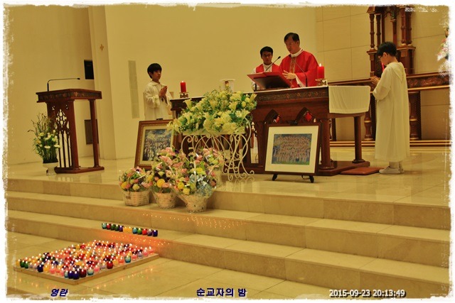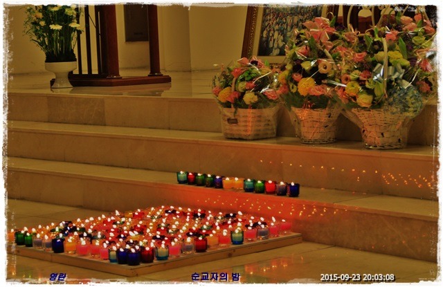 본당에서는 9월 순교자 성월을 보내며 23일 밤 순교자의 밤 행사가 아래 순서로 이루어졌다. 우리는 초대 한국 교회의 순교자의 얼을 본 받아 세상에 유례를 찾아볼 수 없는 한 민족 분단으로 60여년의 애끓는 통한의 세월을 반성하며 평화로운 하나의 조국통일을 이루어 주시길 기도해왔다.