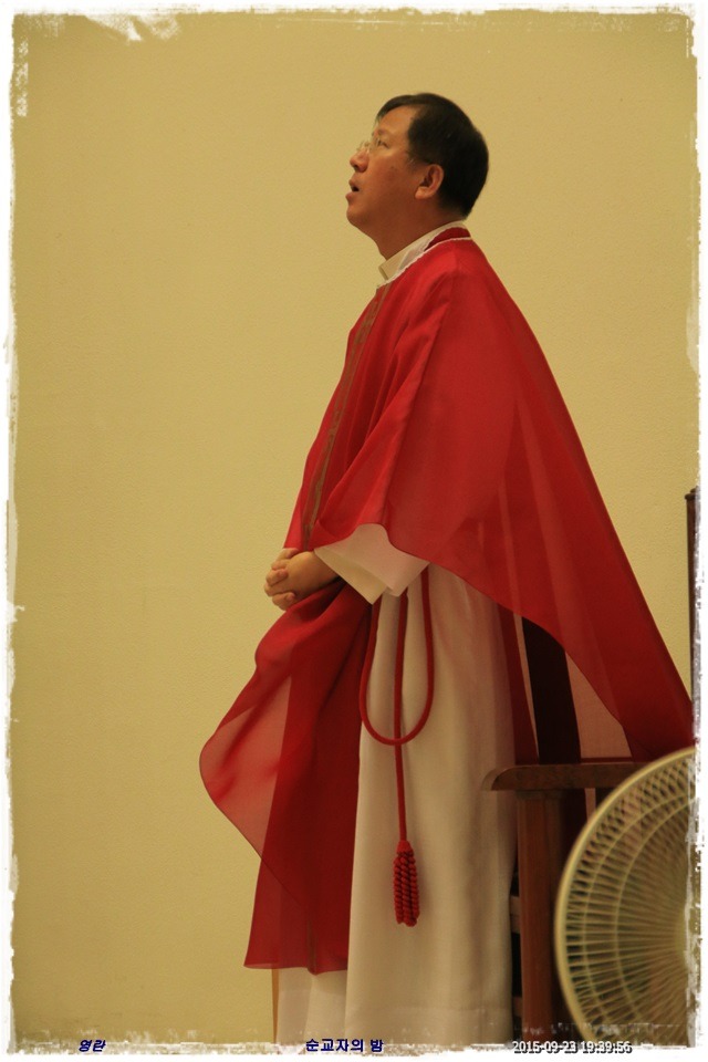 두어평 비좁은 감옥에서 굶주리며 배교하라는 악랄한 고문에 피고름이 흐르고 악취가 극심하였다. 그러나 사랑이신 하느님만은 배교할 수 없다며 목숨을 내 놓았다. 심지어 가시는 부모님 고통 덜하게 단칼에 베어달라고 어린 자식들은 망난이에게 구걸한 동양자루를 바쳐야 햇다고~~~ 우리는 그 신앙 선조들의 얼을 본받아 영원한 천상의 삶을 살자는 요지였다.