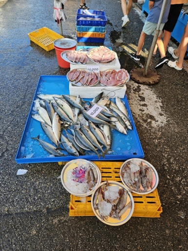 싼 가격과 싱싱함을 자랑하는 각종 해산물과 생선을 보니 마음 속 구매욕구가 솟아 오르며 눈에 보이는 모든 것을 사고 싶지만....