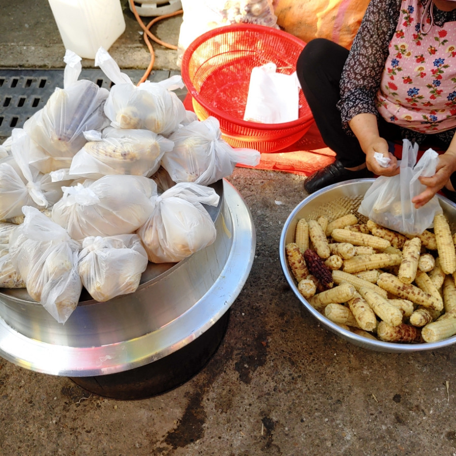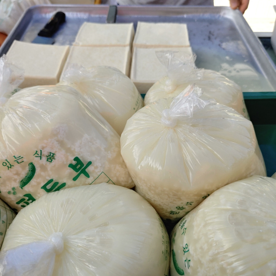지금 제철이라 김이 모락모락 나는 옥수수도 있고 두부, 도토리묵, 메밀묵, 각종 야채와 채소들도 있요.