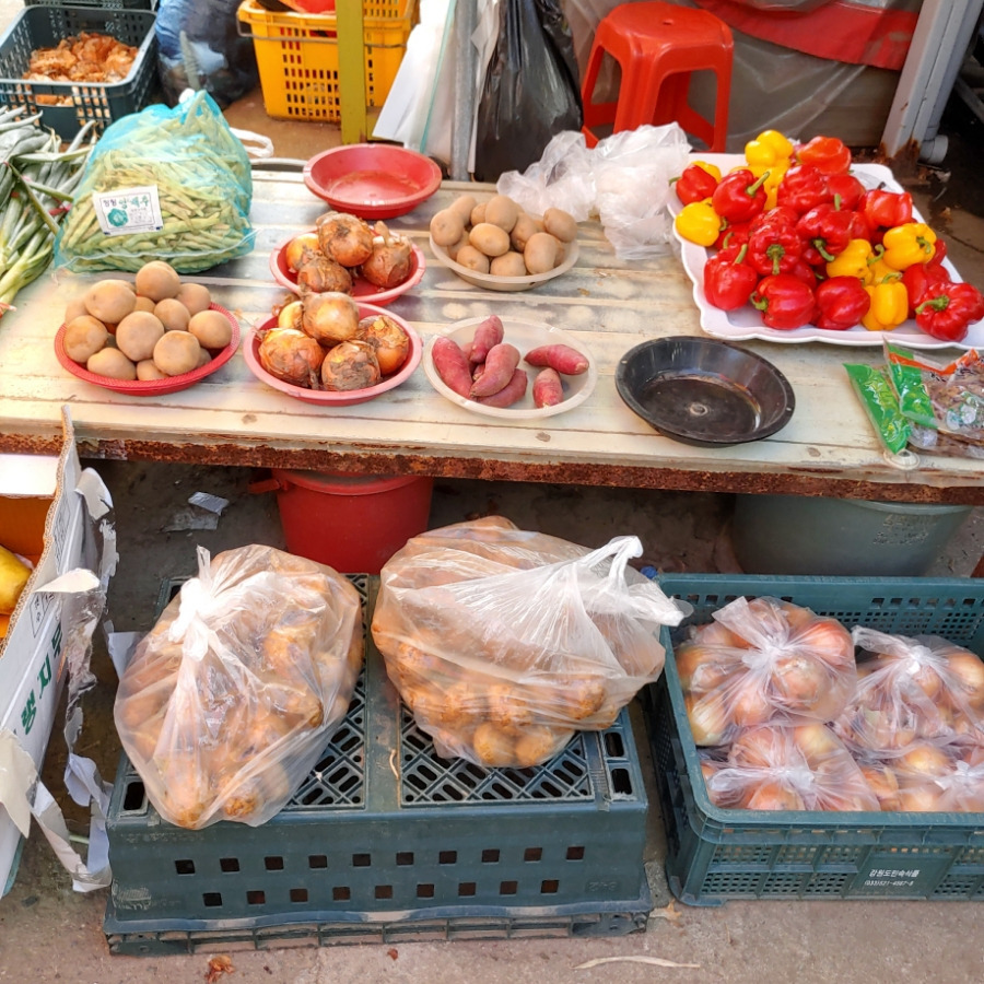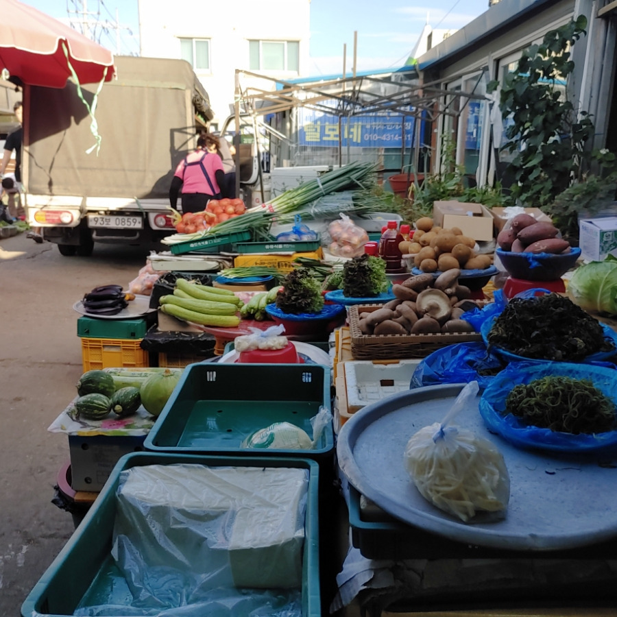 시장 입구에는 직접 농사 지은신 채소와 과일을 가지고 오셔서 판매하시는 어르신들이 계셔요.