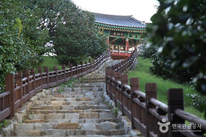 | ▲ 동백정으로 올라가는 돌계단, 마량리 동백나무숲 모습 |