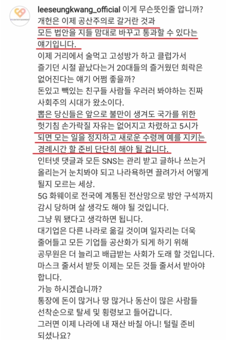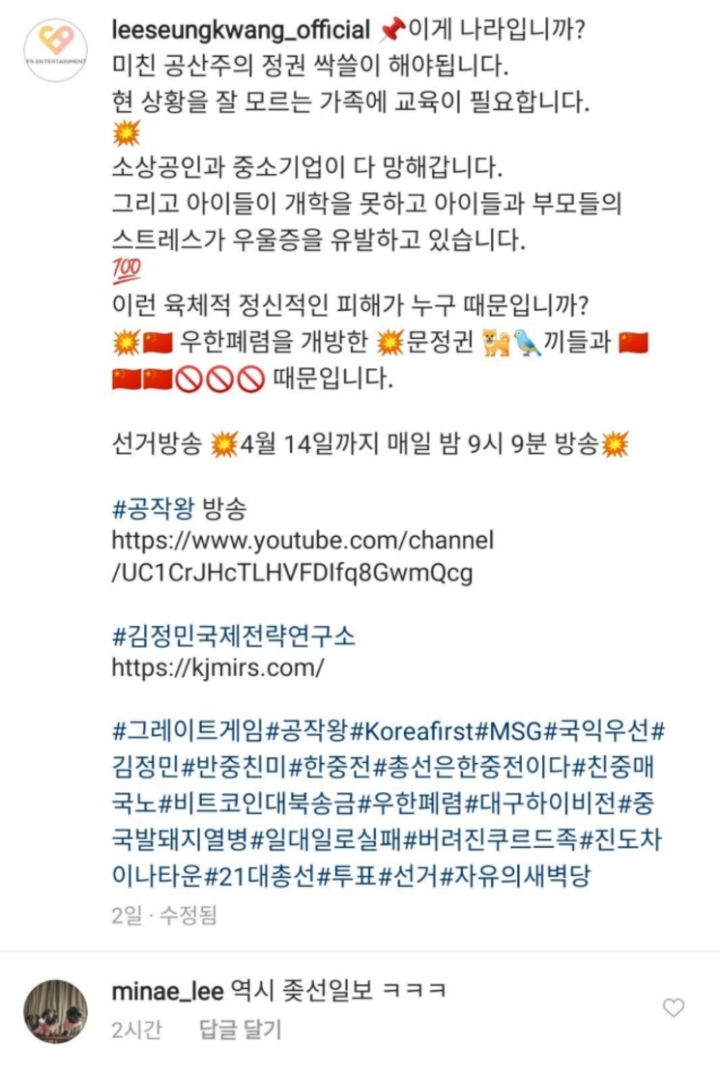 가수 구피'이승광' 근황,조작된나라 빨갱이. 공산주의나라 작성자슈퍼플라워|작성시간20.04.16|조회수11,183 목록 댓글 152 글자크기 작게가 글자크기 크게가 . 다음검색 현재 게시글 추가 기능 열기 북마크 공유하기 신고 센터로 신고 댓글 댓글 152 댓글쓰기 답글쓰기 댓글 리스트 작성자typevisual | 작성시간 20.04.17 이럼 병삼들은 관심을 주지 말아야 함 작성자디세이블 | 작성시간 20.04.17 헬스장 영업중단하라는 권고받고 앙심품었나? 작성자주짓수바라기 | 작성시간 20.04.17 어느 교회 신도인가요? 작성자나아가라고 | 작성시간 20.04.17 ㅉㅉ 작성자나이트키즈 | 작성시간 20.04.18 예전에 마니마니.. 이마니 찾을 때부터 이미 알아봄 ㅋㅋ 댓글 전체보기