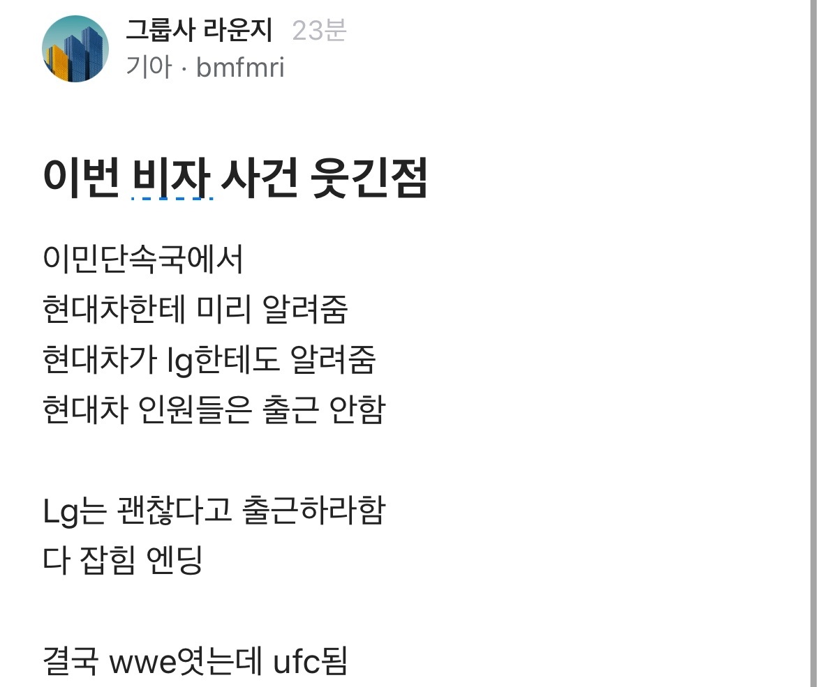 작성시간 25.09.07 보통 cns가 솔루션컴퍼니이고 엘지 계열사임에도 엘지에서 약간 하청업체 부리듯 부리는데, 아마 cns애들은 원청(현대), 제1하청(엔솔)이 출근하라하니 울며겨자먹기로 했다가 걸린듯
