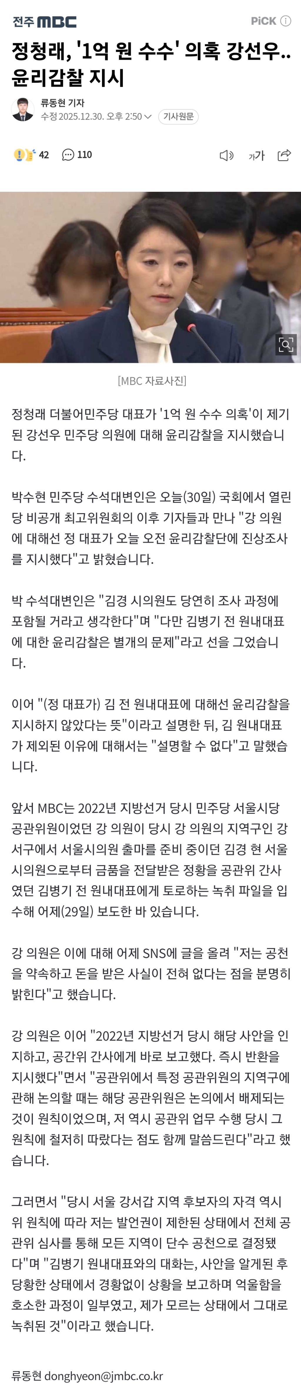 김병기 문제가 더 방대하고 이 강선우 사건과도 연관된 관련자 아닌가?