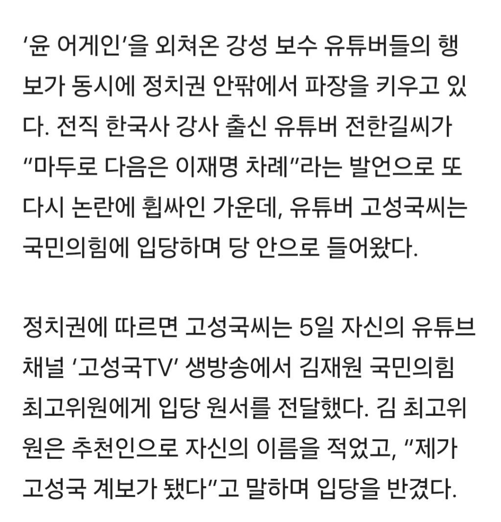 내란길 근황 작성자나도 몰라!1|작성시간26.01.07|조회수3,301 목록 댓글 20 글자크기 작게가 글자크기 크게가 https://v.daum.net/v/20260107082411123전한길은 “마두로 다음은 이재명” 고성국은 입당…국힘으로 모이는 ‘윤어게인’‘윤 어게인’을 외쳐온 강성 보수 유튜버들의 행보가 동시에 정치권 안팎에서 파장을 키우고 있다. 전직 한국사 강사 출신 유튜버 전한길씨가 “마두로 다음은 이재명 차례”라는 발언으로 또v.daum.net 다음검색 현재 게시글 추가 기능 열기 북마크 공유하기 신고 센터로 신고 댓글 댓글 20 댓글쓰기 답글쓰기 댓글 리스트 작성자포카리수액 | 작성시간 26.01.07 ㅋㅋㅋㅋㅋㅋㅋㅋ그래 그렇게 기대해라ㅋㅋㅋㅋㅋㅋㅋㅋㅋㅋ 작성자플러스알파 | 작성시간 26.01.07 야차 마렵다. 작성자Mercedes_benz | 작성시간 26.01.07 대구경북 나오면 무적권 당선! 작성자전북백승호 | 작성시간 26.01.07 뽕맛 봐서 그럼 작성자세째라니!! | 작성시간 26.01.07 못생긴새끼서인ㆍ중권ㆍ한길대한민국 3대 추남 댓글 전체보기