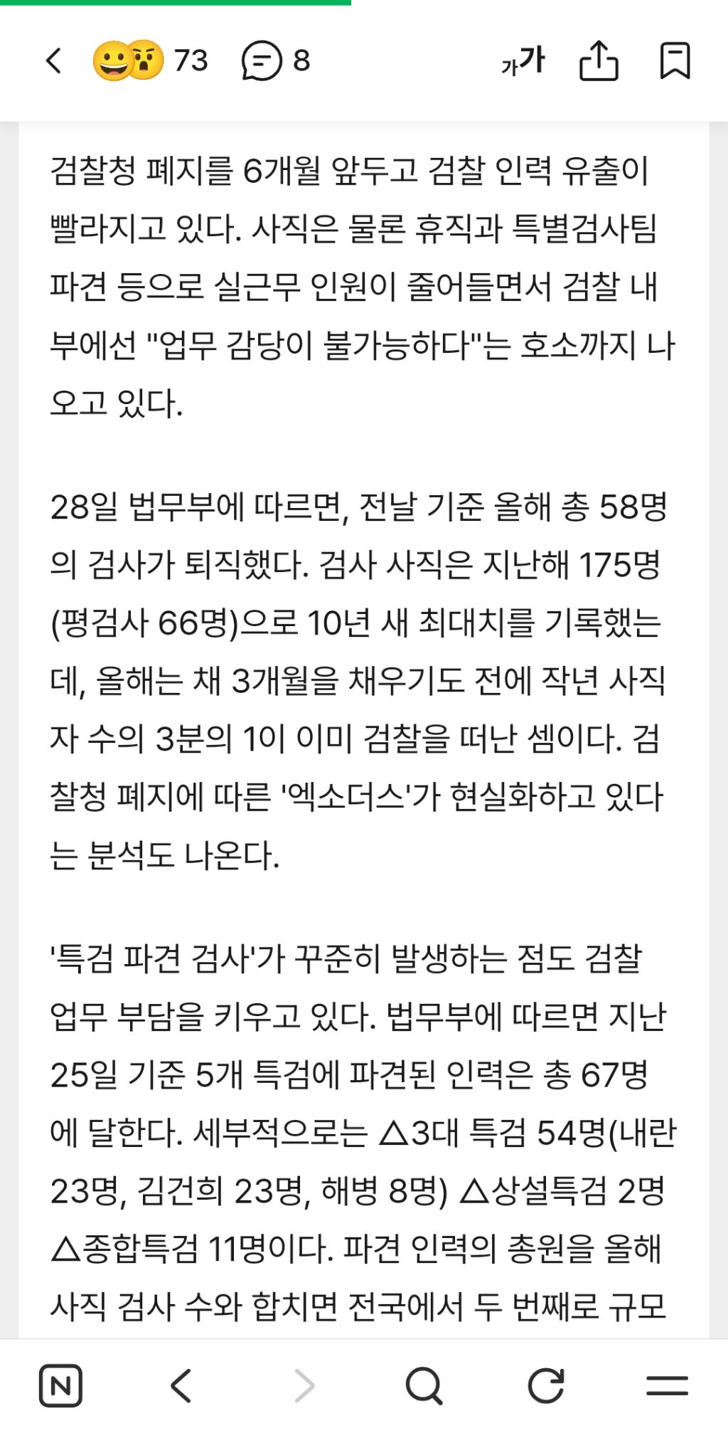 검찰청 폐지에 검사 58명 사표 작성자cafe latte 한잔|작성시간26.03.29|조회수3,001 목록 댓글 18 글자크기 작게가 글자크기 크게가 다음검색 현재 게시글 추가 기능 열기 북마크 공유하기 신고 센터로 신고 댓글 댓글 18 댓글쓰기 답글쓰기 댓글 리스트 작성자이새끼를 구원하소서..... | 작성시간 26.03.29 나이서~ 작성자겨울의검 | 작성시간 26.03.29 밖은 춥다. 작성자아도~겐 | 작성시간 26.03.29 뻔하지~~구리니까 털릴까봐 미리 발 빼는구만 작성자대끼리요 | 작성시간 26.03.29 더더더더더 작성자놀고만싶어 | 작성시간 26.03.29 그동안 많이 해묵었지 댓글 전체보기