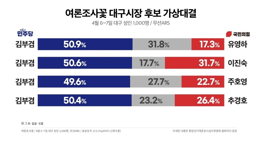 작성자디바우러 작성시간 26.04.11 여론조사 꽃은 2찍들이 답 안해줘서 이제는 어쩔 수 없이 표본의 오염이 있습니다