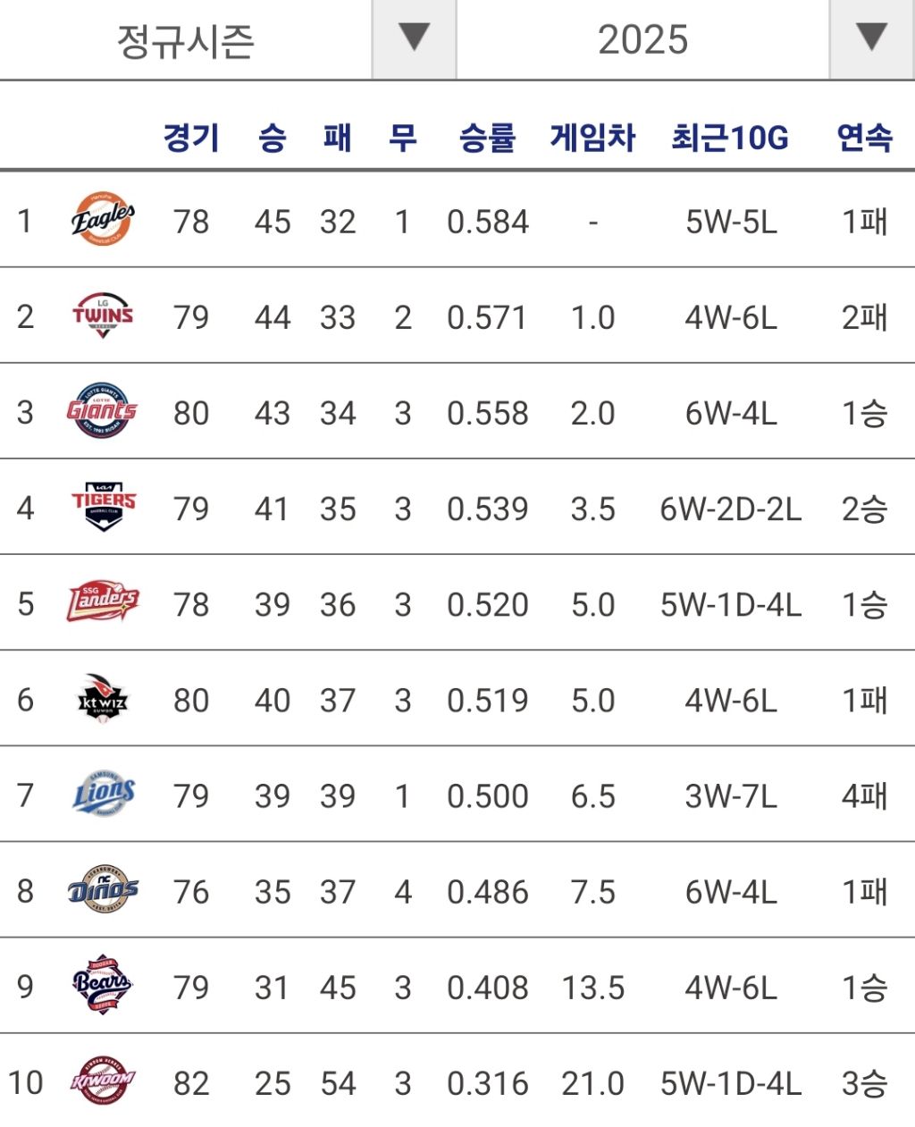 작성시간 25.06.30 기아 1위 찍을듯 ㄷㄷ