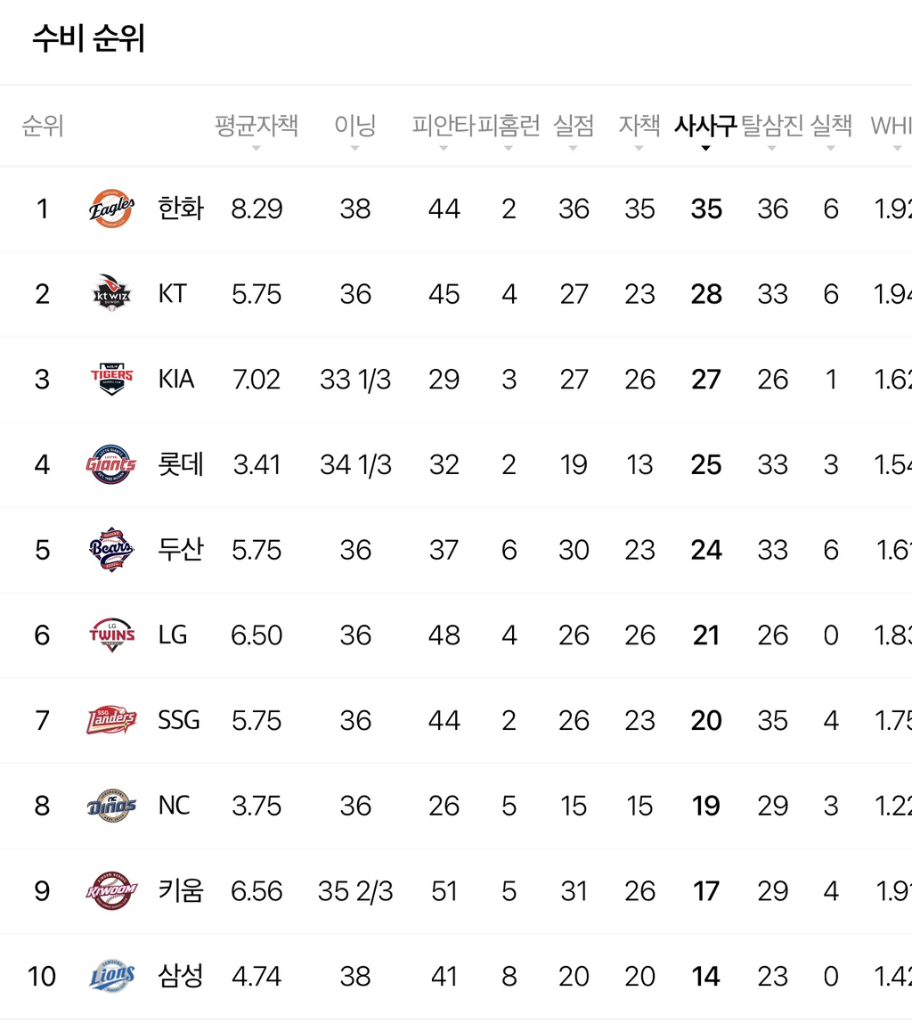 이제 팀당4경기 했는데 총 사사구만 230개..