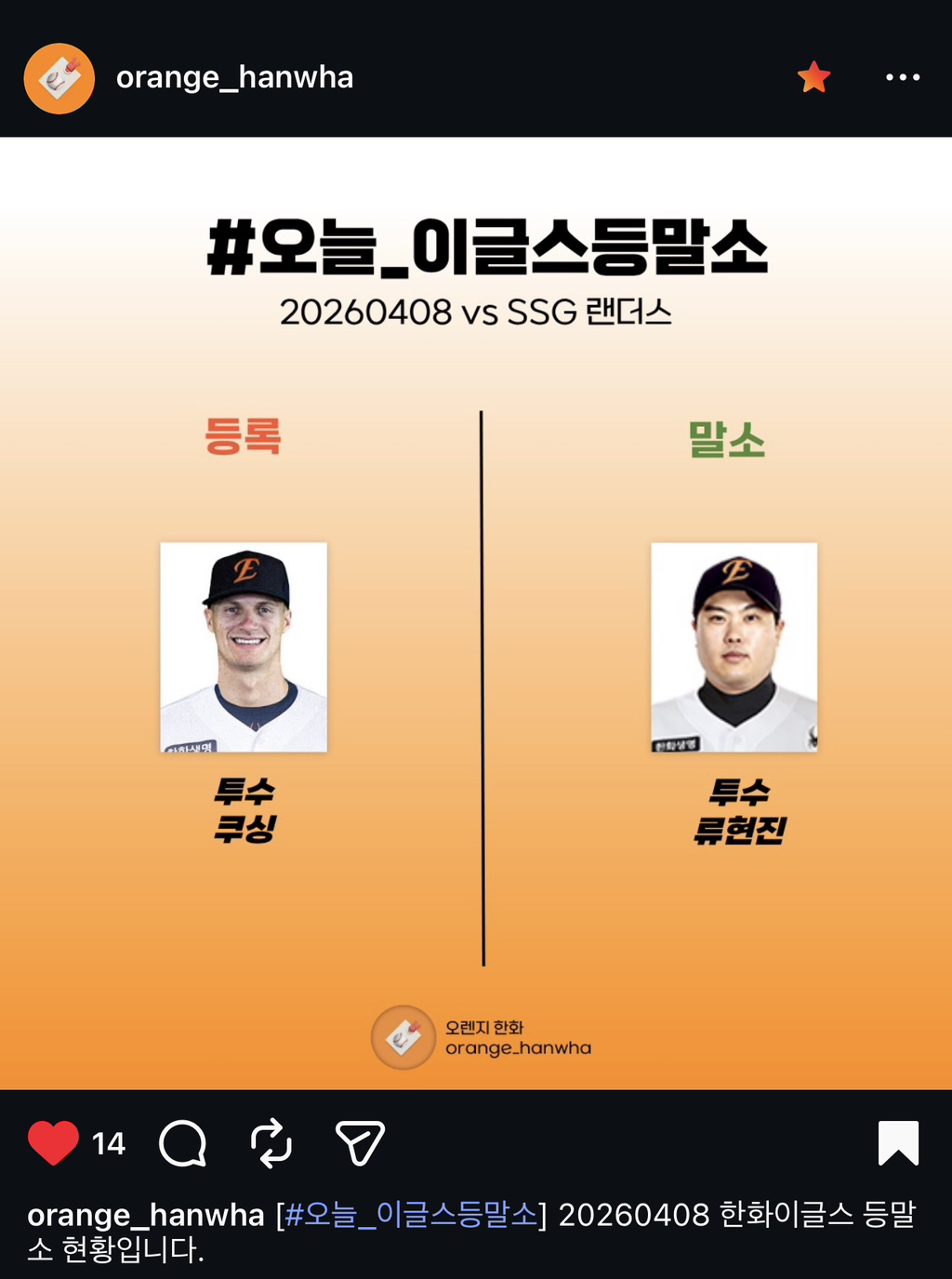 출처: orange_hanwha 인스타그램