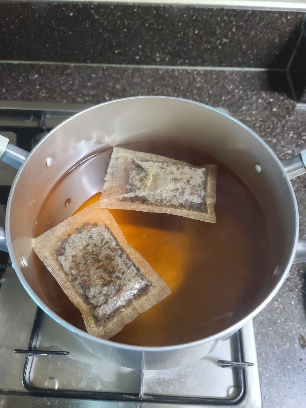 물이 끓어 오를 때 불을 끄고 보리차 티백을