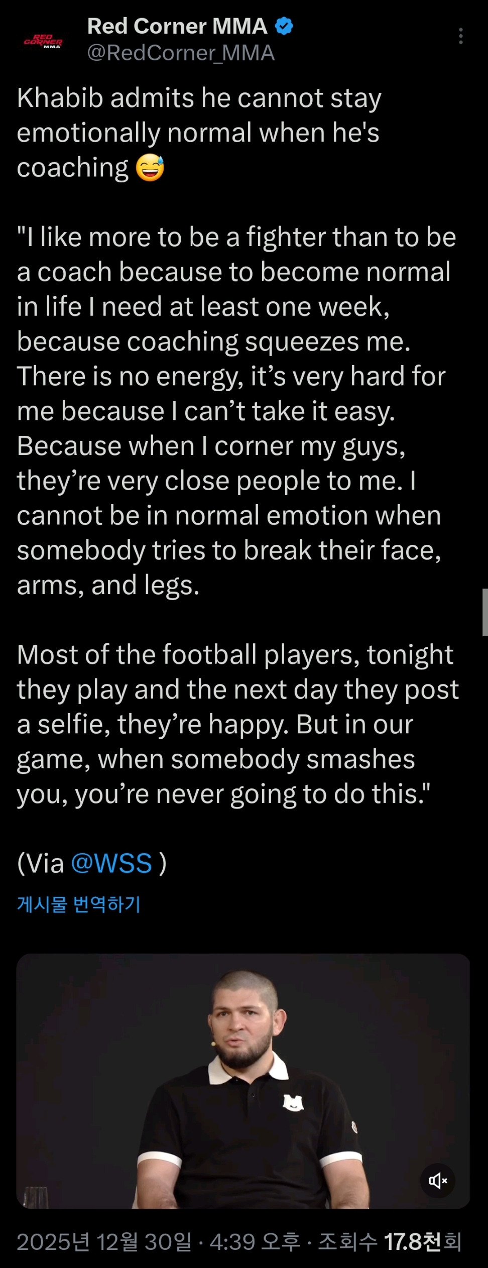 하빕은 코치를 할 때 감정적으로 평정심을 유지하기가 어렵다고 인정했다