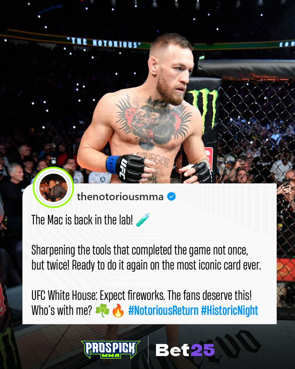 코너 맥그리거가 다시 훈련을 시작했으며, 화이트하우스 카드 준비에 들어갔다고 밝혔습니다.