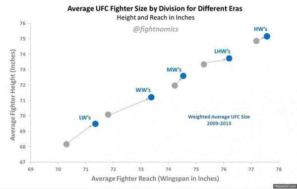 이게 무슨말이냐면 현재 미국 백인 남성의 평균키가 178.. 즉 라이트급 가량 되고..