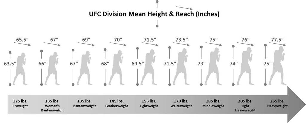 라이트급 평균 69.5인치= 176.53 센티