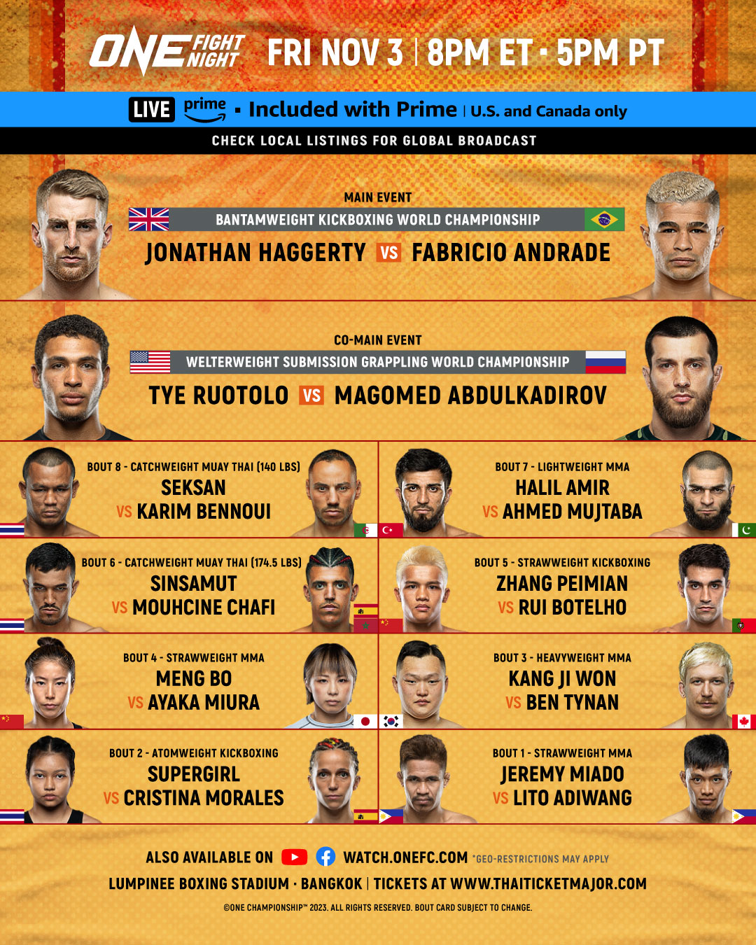 원 챔피언십 벤텀급 킥복싱 챔피언 조나단 헤거티 vs mma 챔피언 파브리시오 안드라지 경기