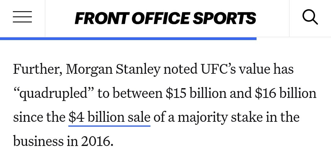 ※ 참고로 UFC의 비즈니스 관련 기사에 데이나 화이트의 얼굴이 자주 첨부되지만, 데이나 화이트는 UFC의 오너가 아니고, 지분도 없기 때문에 TKO 그룹 이사회 멤버도 아닙니다. 엔데버가 인수하기 전에도 오너는 퍼티타 형제였으며, 엔데버가 인수하면서 데이나가 보유했던 10% 지분도 다 넘김.