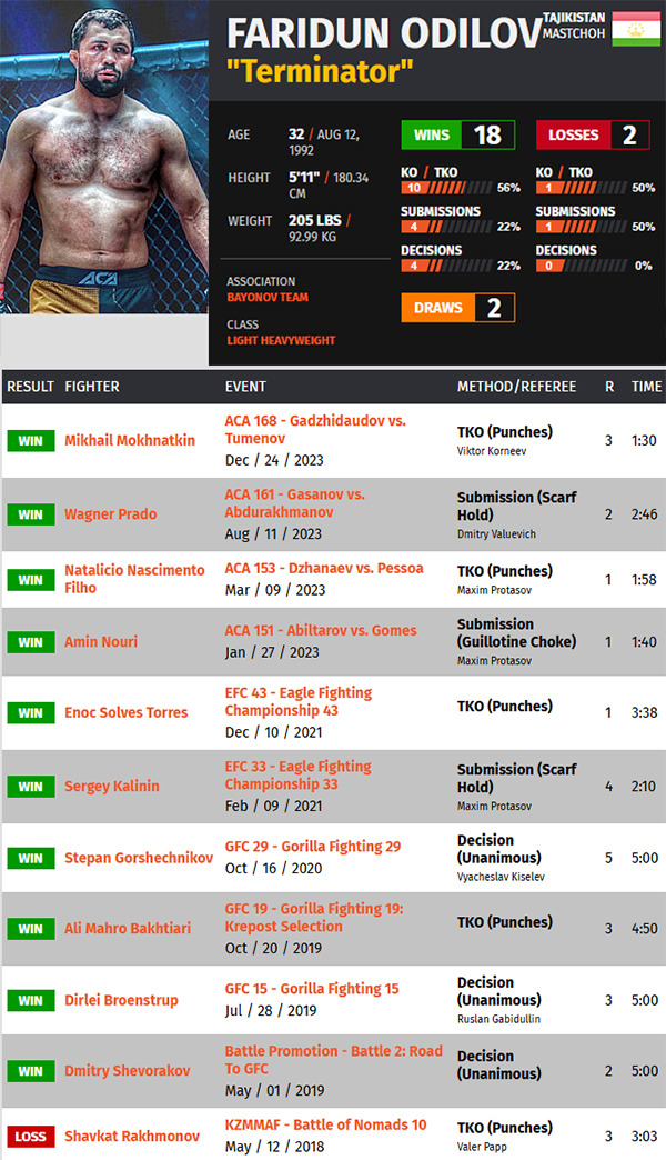 카지키스탄 파이터 Faridun Odilov