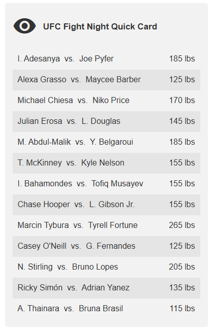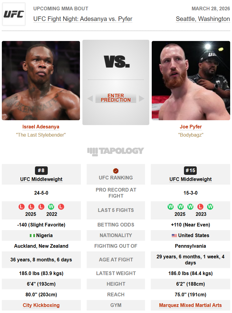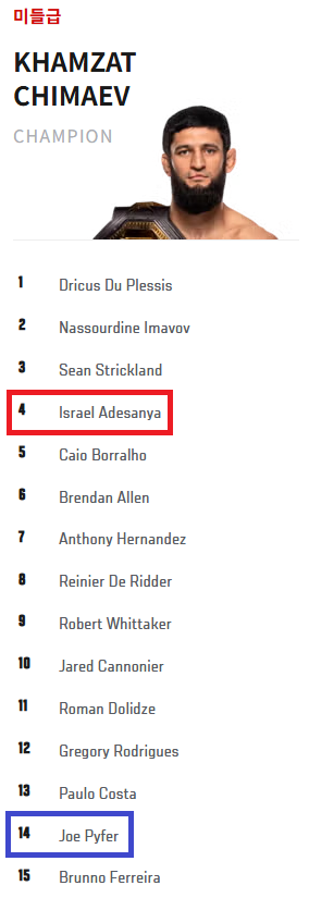 D-7) 아데산야 vs. 파이퍼 승자는? + UFC 공식 랭킹 작성자플러스알파|작성시간26.03.22|조회수633 목록 댓글 2 글자크기 작게가 글자크기 크게가 3월 17일 기준 다음검색 현재 게시글 추가 기능 열기 북마크 공유하기 신고 센터로 신고 댓글 댓글 2 댓글쓰기 답글쓰기 댓글 리스트 작성자감성맞춤 | 작성시간 26.03.22 아데산야랑 바이퍼랑 싸운다는줄 알고 깜놀하고 들어온 사람 손! 작성자스포티가이 | 작성시간 26.03.22 아 14위랑 붙네 댓글 전체보기