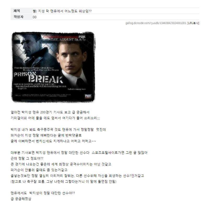 류준열이 디시에 올렸던 글들인데 라섹하고 축구 관련 이야기 밖에 없음, 가는 갤러리는 학술,패션,방송 갤러리