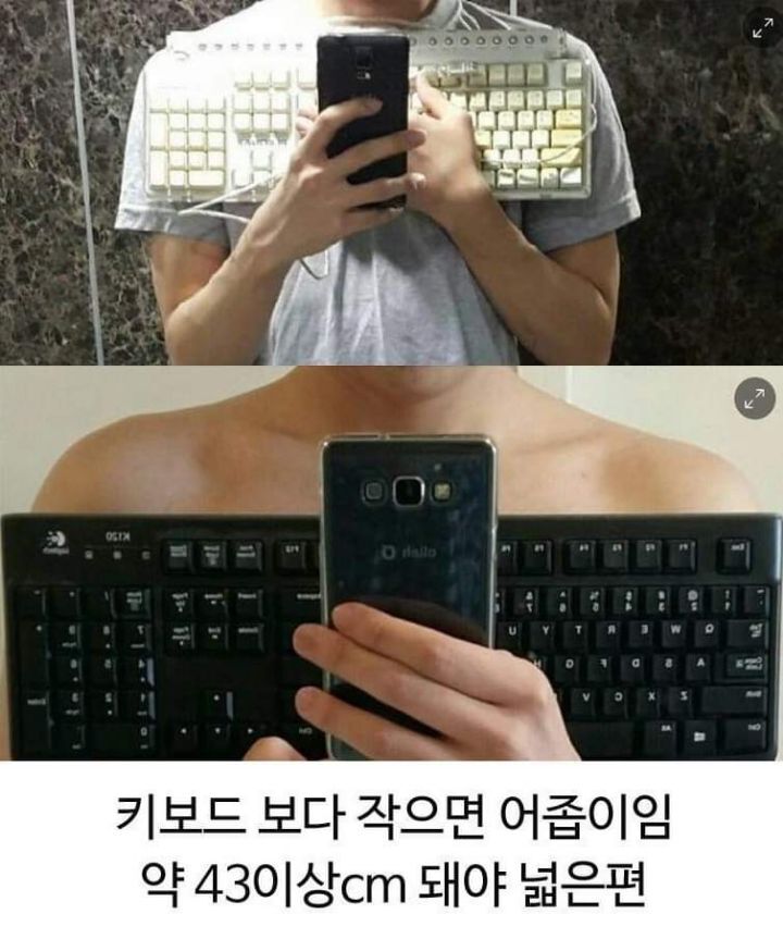 작성시간 22.05.22 저도 어깨 좁다고 생각하고 그렇게 보여지는데 집에 있는 키보드 재보니 44센던데