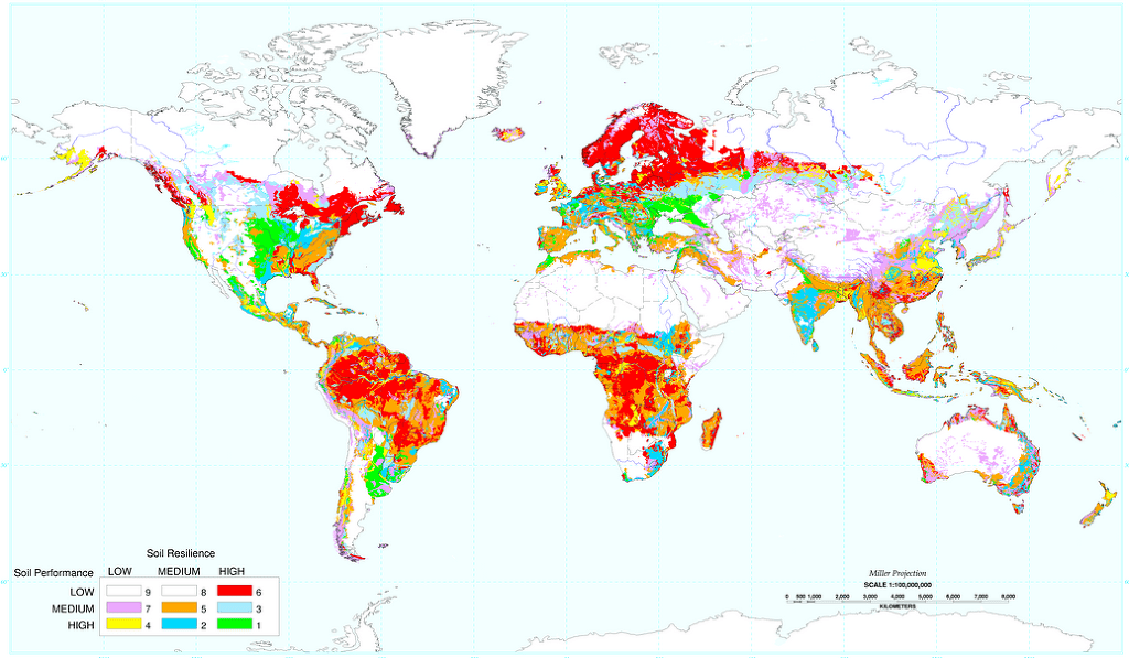 1등급 연두색 : 이런 땅은 지구면적의 3퍼센트밖에 안되며, 이중 절반에 가까운 46-7퍼센트이상이
