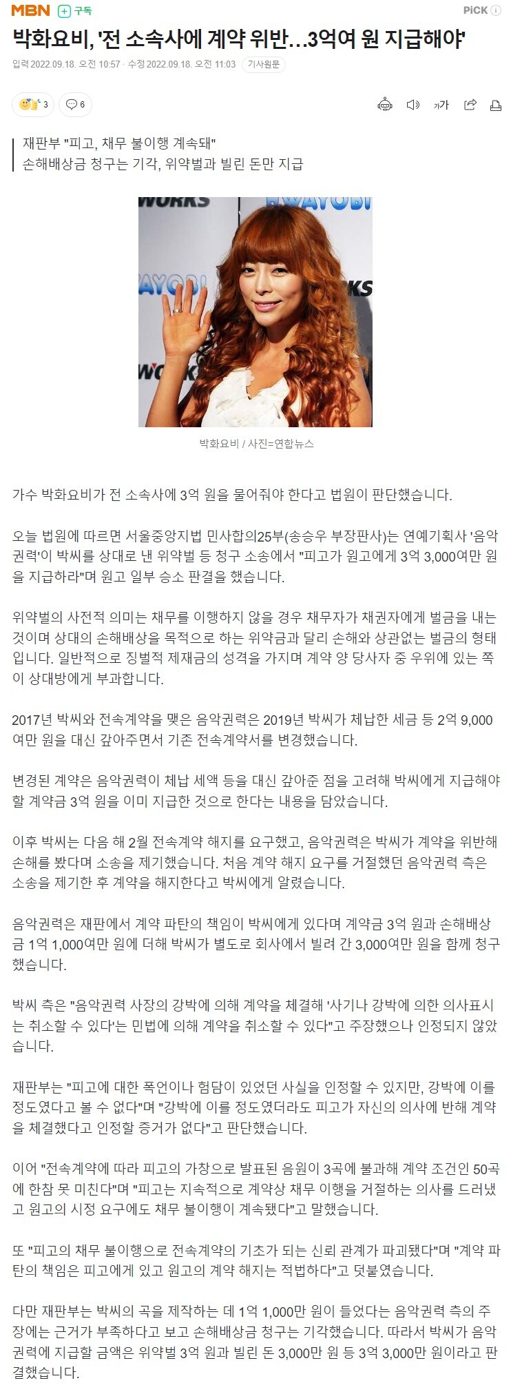 작성시간 22.09.19 흠....변경된 계약서에 계약기간 동안 50곡의 음원발표가 제대로 이루어 지지 않으면 위약벌 3억은 전부 내지 일부를 지급하지 않아도 된다 라는 내용을 삽입했으면 3억전부를 지급하진 않아도 될수 있었을텐데....