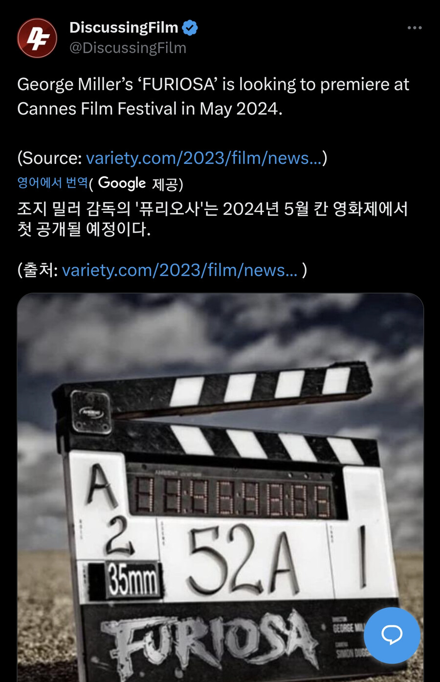 매드맥스 후편 '퓨리오사' 2024년 5월 공개. 작성자정신병자|작성시간23.10.06|조회수4,790 목록 댓글 6 글자크기 작게가 글자크기 크게가 어린 퓨리오사 역 안야테일러.토르가 빌런으로.감독이 조지밀러 라면 무조건 봐야지. 암 그렇고말고.배우들 여럿 갈려나가겠구만. 다음검색 현재 게시글 추가 기능 열기 북마크 공유하기 신고 센터로 신고 댓글 댓글 6 댓글쓰기 답글쓰기 댓글 리스트 답댓글 작성자고려인선비 점잖성(올핸몸짱되기) | 작성시간 23.10.06 나는 니은!! 작성자특별한회원 | 작성시간 23.10.06 조지밀러라 다행이다. 가즈아 작성자nalacat | 작성시간 23.10.06 근데 매드맥스 너무 재미없어서 깜놀했었음 완전 비급영화급 답댓글 작성자쓰무 | 작성시간 23.10.06 헛.. 작성자인생 한방일까 두방일까 | 작성시간 23.10.06 맥스도 나이키 신발이름, 퓨리오사도 나이키 신발이름인데 ㅋ 댓글 전체보기