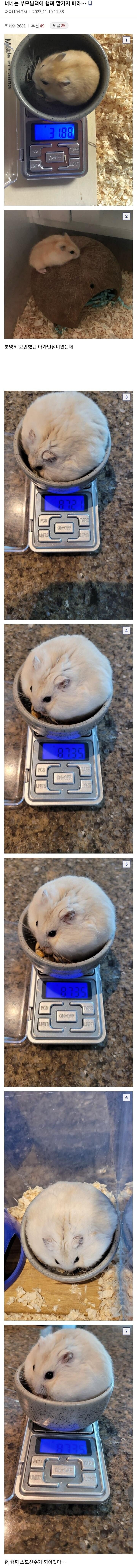 이종격투기 부모님한테 햄스터를 맡기면 안되는 이유 작성시간23.11.17|조회수5,151 목록 댓글 2 글자크기 작게가 글자크기 크게가 다음검색 현재 게시글 추가 기능 열기 북마크 공유하기 신고 센터로 신고 댓글 2 댓글 리스트 작성시간 23.11.17 2.5배 ㅎㄷㄷㄷ 작성시간 23.11.17 ㅋㅋㅋㅋ 카페 방문해 더 많은 댓글 만나기!