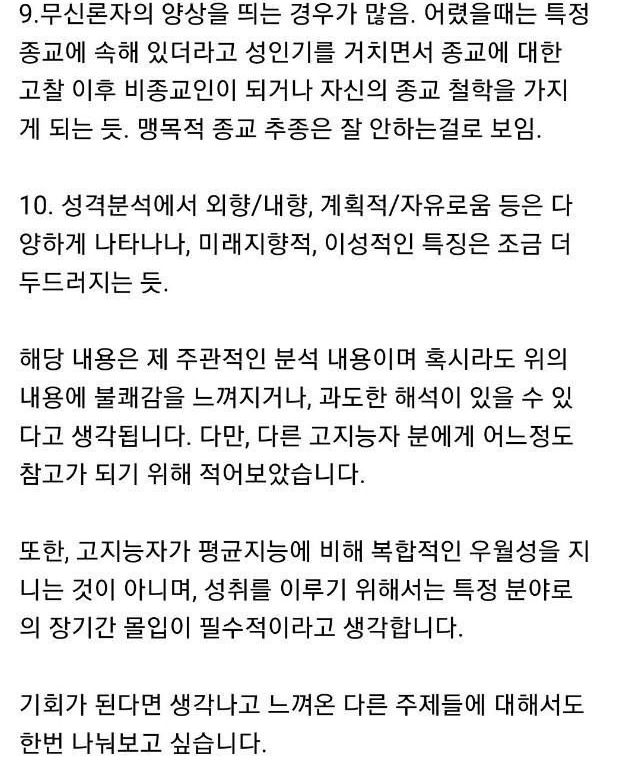 작성자엠딕 작성시간 24.01.05 내주변 아이큐 높은 놈들 특징 세놈다 변변찮은 직업없고 장가도 안갔음
