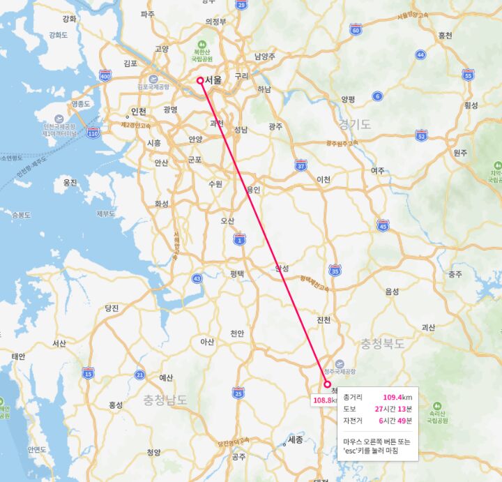 서울로 따지면 남산에서 청주시내까지가 평야임