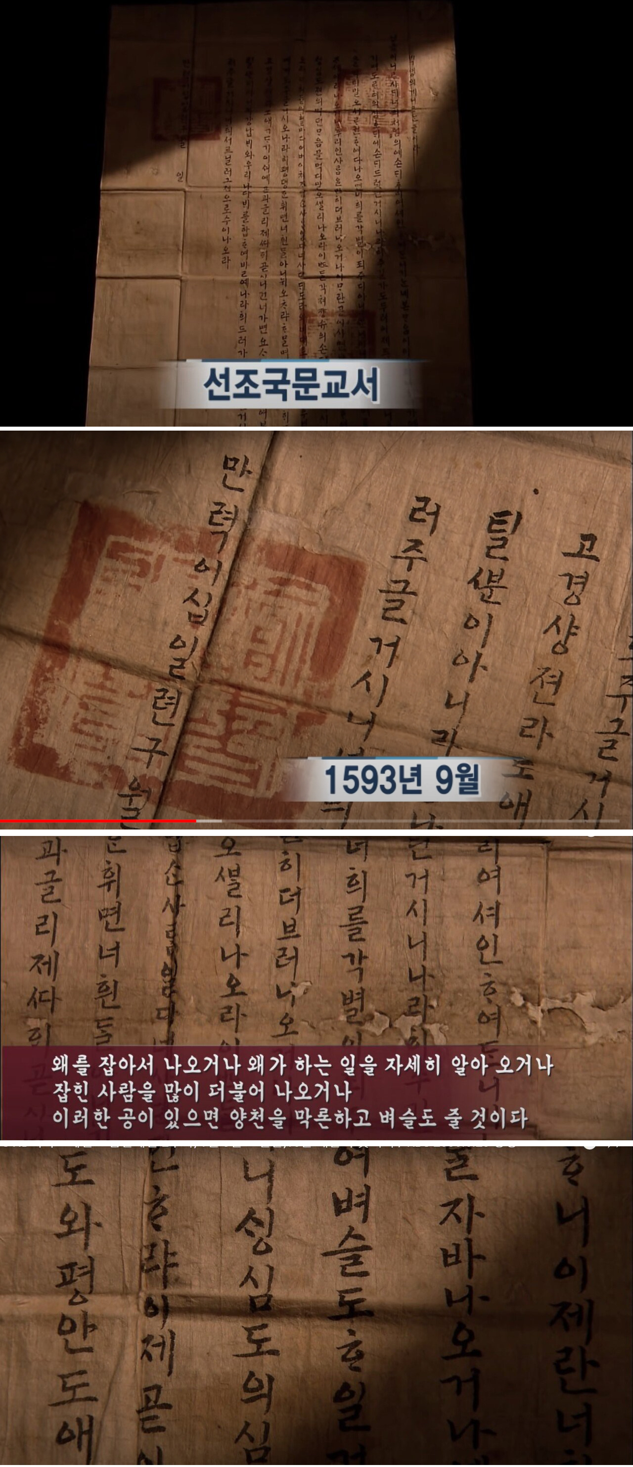 임금께서 이르시되 “너희가 처음에 왜적에게 포로가 되어서