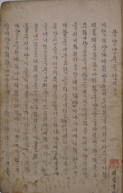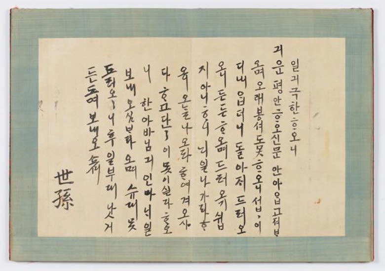 한글 필사가 유행하던 18세기 문화를 엿 볼수 있는 귀중한 자료이자 한글 흘림체의 범본이라 할 정도로 수준이 높은 효의왕후 한글 글씨로 보물로 지정됐다