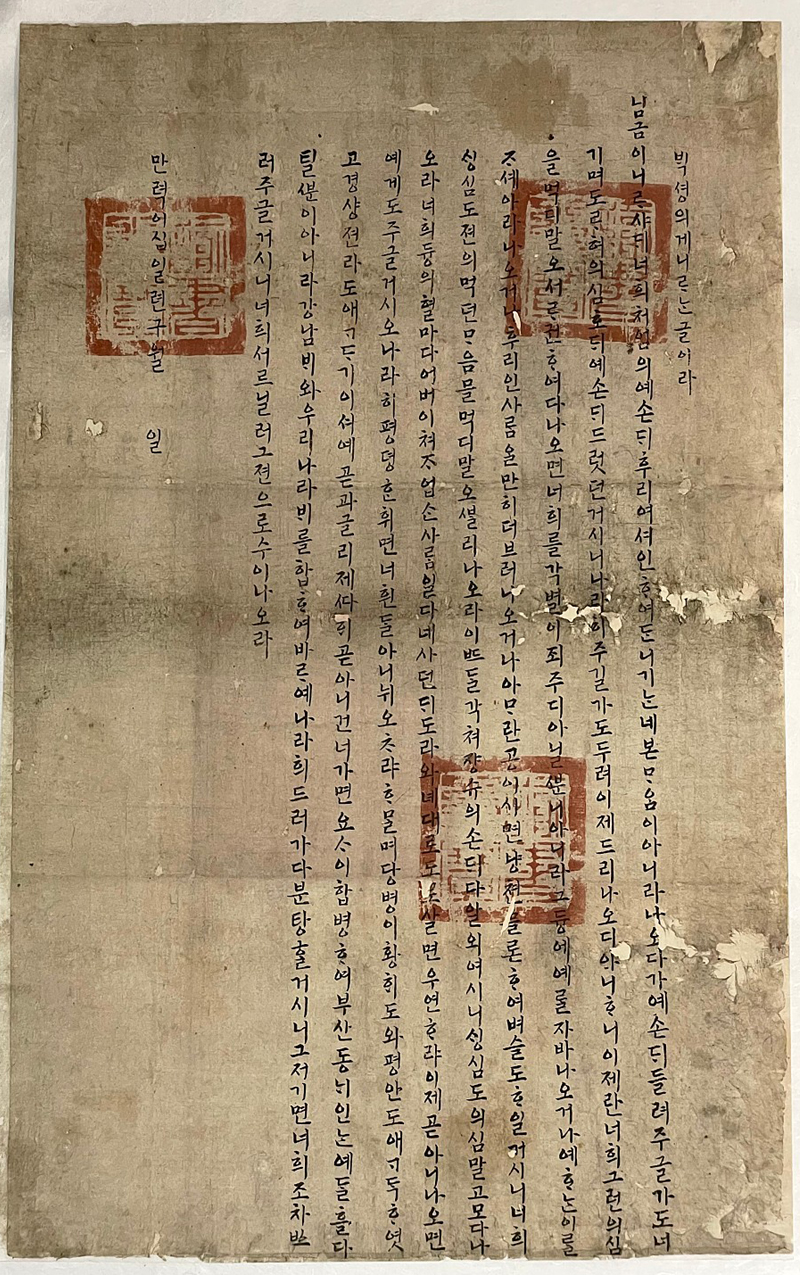 조선의 왕이 백성들에게 내린 한글 공문서