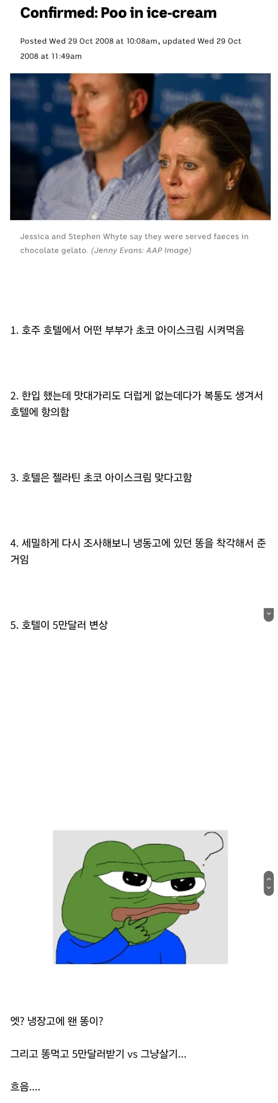 호텔에서 초코 아이스크림 사먹고 7000만원 배상 받은 부부 작성자토빈이|작성시간24.08.14|조회수27,530 목록 댓글 33 글자크기 작게가 글자크기 크게가 추가로 당신이 정말 싫어하는 사람 설사 한그릇 먹으면 1억이라면 도전? 다음검색 현재 게시글 추가 기능 열기 북마크 공유하기 신고 센터로 신고 댓글 댓글 33 댓글쓰기 답글쓰기 댓글 리스트 작성자구름구름 | 작성시간 24.08.14 더 줘야되는거 아닌가??;;;;;;;끔찍 작성자슈퍼몸뚱이 | 작성시간 24.08.14 똥이 왜 냉동실에 있는데?? 작성자상상공상망상 | 작성시간 24.08.14 우리는 얼마나 줬을라나? 작성자환골탈퇴 | 작성시간 24.08.14 와, 요건 좀 고민된다ㅋㅋ 작성자다이테츠 | 작성시간 24.08.14 미국같으면 70억 배상감 아닌가 댓글 전체보기