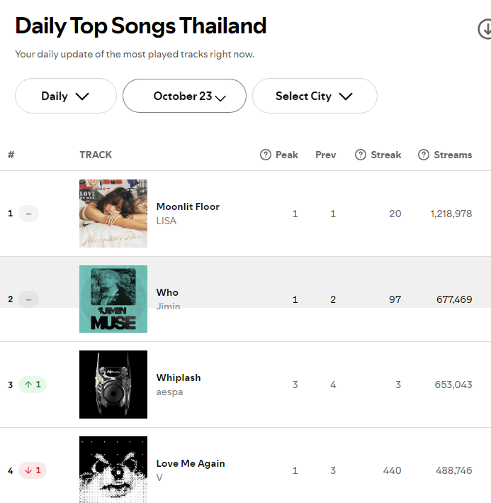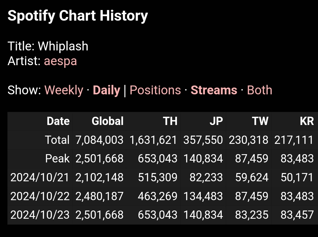 스포티파이 태국 전날보다 약 19만 가까이 상승한 65만 돌파!