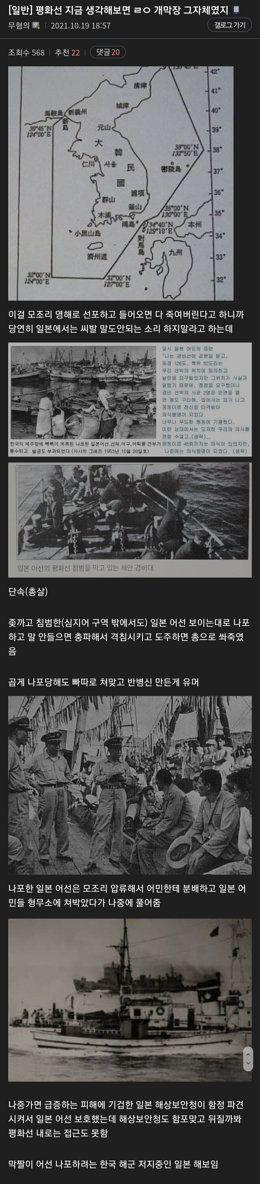 작성자maz_www 작성시간 25.01.01 저때가 이승만때인데, 이승만은 나름 독립운동했던 사람이라고 일본에 강경그자체였지만.... 박정희때 일본과정식수교하면서 일본이 평화선 없애라고해서 일본이 요구하는데로 없애고 해상권 다시 정함ㅎ