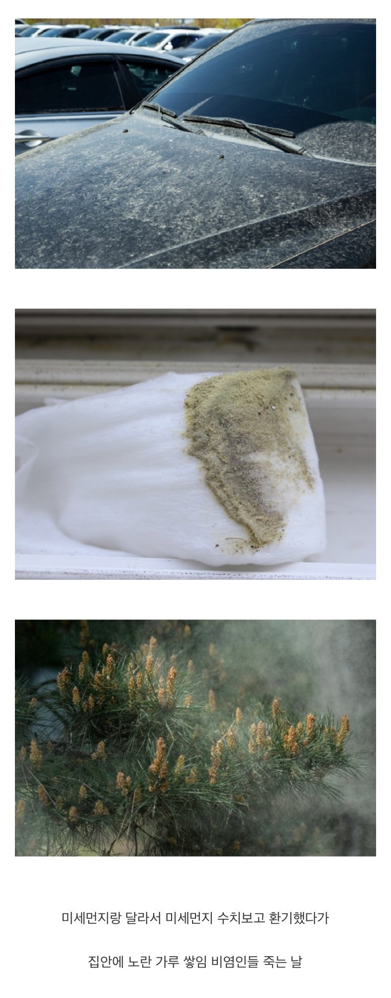 산에 연기를 피운 듯 노란 꽃가루가 연기처럼 한라산을 가릴 정도였음. -
