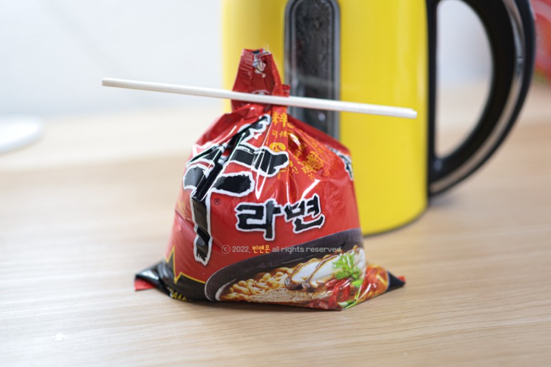 작성시간 25.06.07 라면봉지 입구쪽을 한번 까뒤집어 접어야지