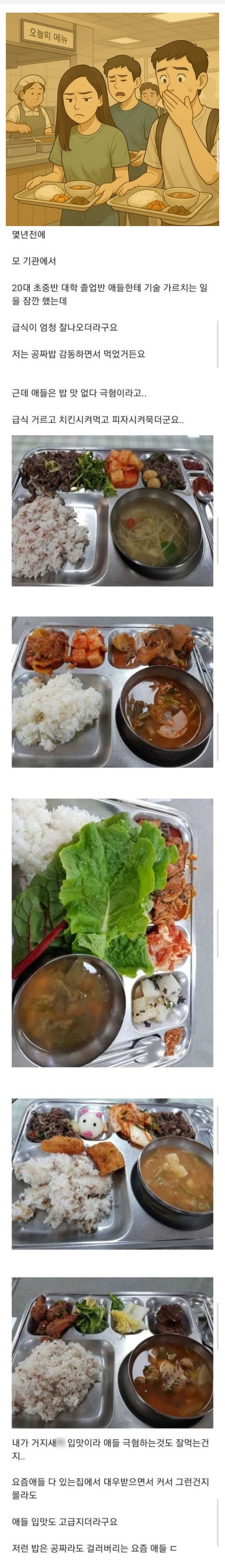작성시간 25.06.09 저 급식통이 문제인거 ㅋㅋㅋ 저거 반찬그대로 이쁜그릇에 나가면 좋다고 허겁지겁 먹음 ㅋㅋㅋ