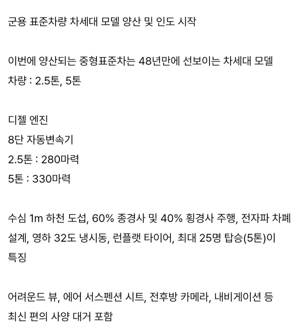 작성시간 25.06.14 EMP에 대비한다고 사제는 손가락 만한 부품도 손바닥 만하게 만들어야되어서 차가 엄청 무거워지죠.. 구형은 차가 퍼져도 대충 공기 빼고 점프하면 굴러갔는데 레토나는 퍼지면 답이 없었죠...ㅜㅜ 정비가 쉬워야 고생들 안할텐데... 이상 1야수교 99군번 2813 중차량... 상병부터 레토나 운전병이었습니다..