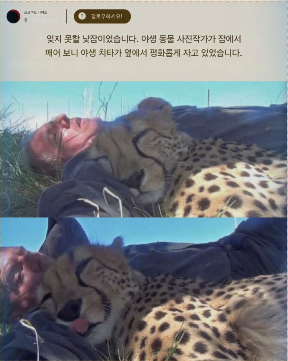 이종격투기 잊지 못할 낮잠이였습니다 작성시간25.06.25|조회수24,857 목록 댓글 9 글자크기 작게가 글자크기 크게가 다음검색 현재 게시글 추가 기능 열기 북마크 공유하기 신고 센터로 신고 댓글 9 댓글 리스트 작성시간 25.06.26 쟤넨 의외로 키울 수도 있더라는 작성시간 25.06.26 이따 일어나서먹어야지~~ 작성시간 25.06.26 사진 작가들은 사자들이 공격 안하나??? 작성시간 25.06.26 간식 지키는중 작성시간 25.06.26 치냥이 카페 방문해 더 많은 댓글 만나기!