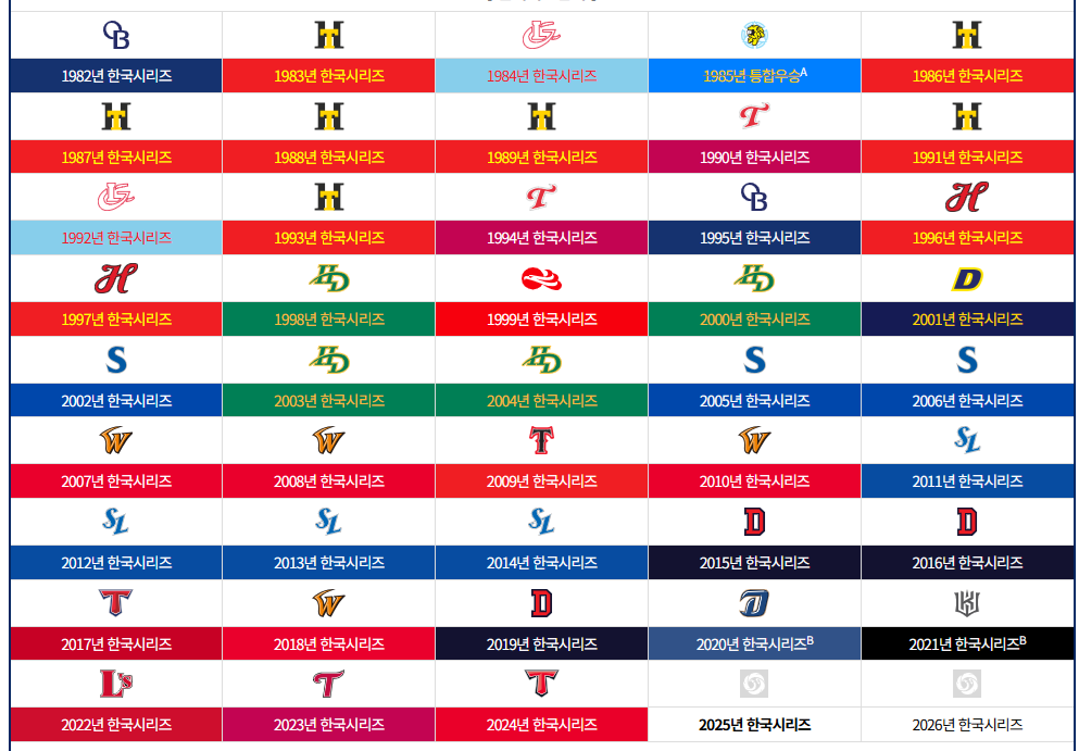 이종격투기 KBO 한국시리즈 역대우승팀 작성시간25.06.26|조회수8,419 목록 댓글 9 글자크기 작게가 글자크기 크게가 다음검색 현재 게시글 추가 기능 열기 북마크 공유하기 신고 센터로 신고 댓글 9 댓글 리스트 답댓글 작성시간 25.06.26 해태도 4연속, 총 12회 작성시간 25.06.26 정규 시즌 우승은 삼성이 제일 많겠지 작성시간 25.06.26 작년에 했으니 , 7년후에 우승하자 ㅎ 작성시간 25.06.26 2004년 개꿀잼이었지 작성시간 25.06.26 권혁-권오준-정현욱-안지만-오승환 카페 방문해 더 많은 댓글 만나기!