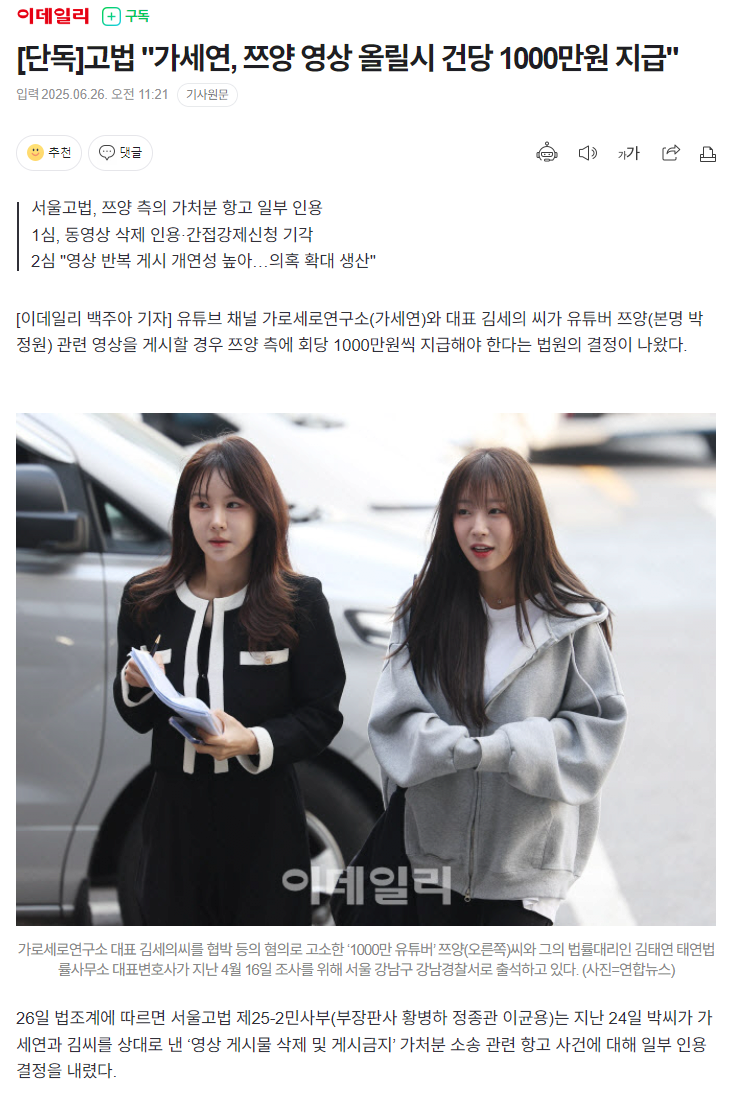 작성시간 25.06.27 어, 이상하네 방송에서 져 변호사 저래 안생겻엇는데,,, 신문기사도 뽀샵 해주나