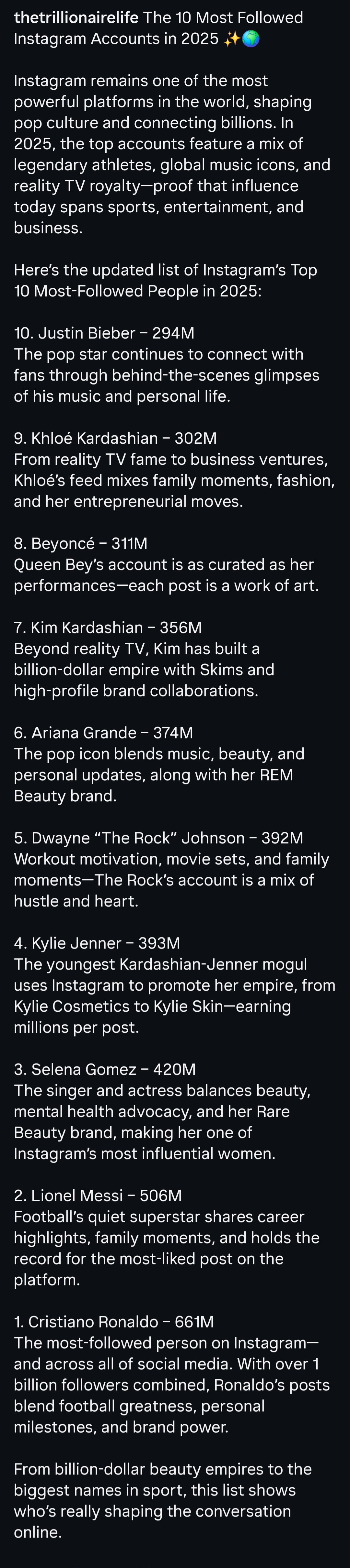 담고 있는 세계 최고 인기 계정