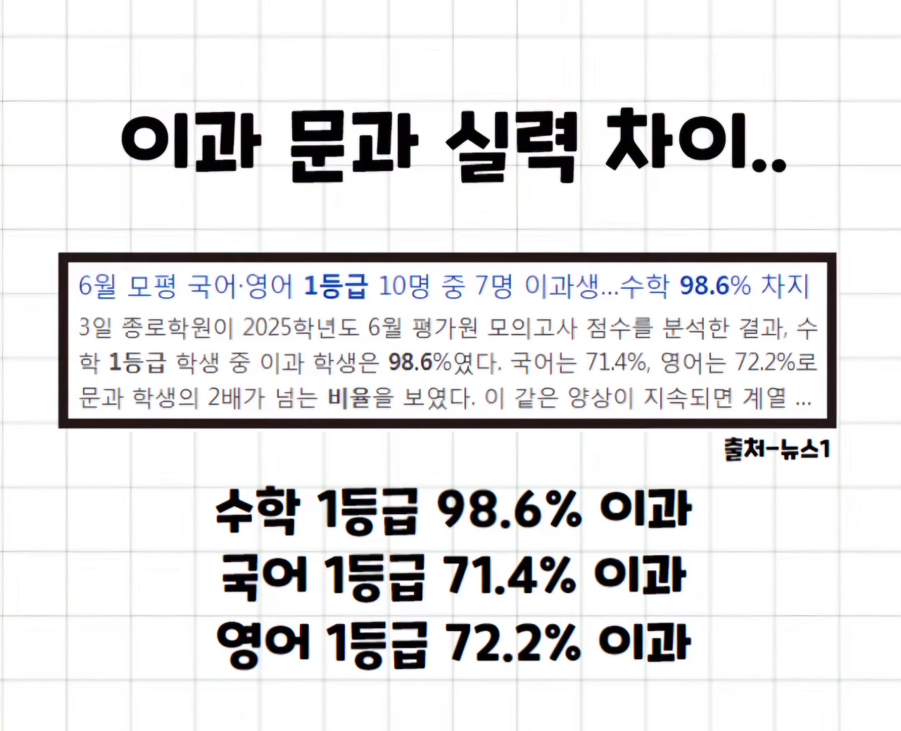 수학은 그렇다쳐도 국어,영어도 이 정도라니 ㄷㄷㄷ
